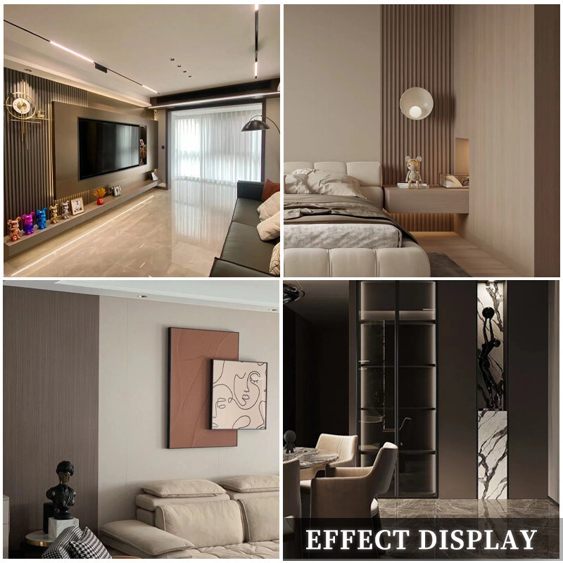 Eenvoudige installatie, Milieubescherming, Flexibel, Buigbaar, Hoge dichtheid, opvouwbaar. Vuurvast + waterdicht + Vochtbestendig + krasbestendig + Geluidsabsorberend, Schimmelbestendig. Lichtgewicht. Duidelijke texturen, Verscheidenheid aan kleuren, etc.