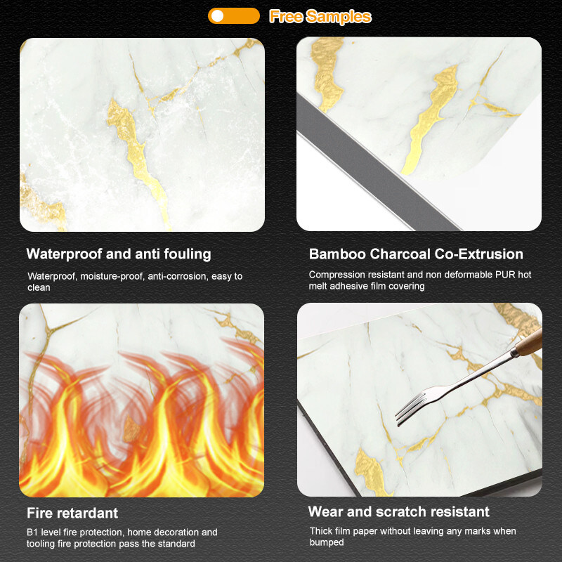Zoals de naam al doet vermoeden, is Bamboo Charcoal Wood Veneer gemaakt van een combinatie van bamboe houtskool, bamboe houtvezels, PVC en PET-materialen.Bamboekool staat bekend om zijn natuurlijke zuiverende eigenschappenDe bamboe houtvezel voegt kracht en duurzaamheid toe, terwijl de PVC en PET materialen een waterdicht en makkelijk te reinigen oppervlak bieden.