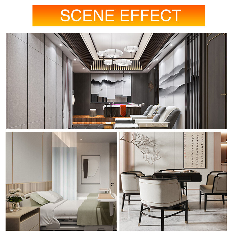 Eenvoudige installatie, Milieubescherming, Flexibel, Buigbaar, Hoge dichtheid, opvouwbaar. Brandwerend + waterdicht + Vochtbestendig + krasbestendig + Geluidsabsorberend, Schimmelbestendig. Lichtgewicht. Duidelijke texturen, Verscheidenheid aan kleuren, etc.
