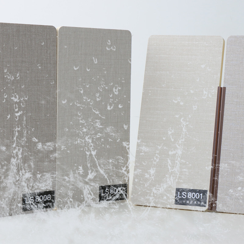 8mm bamboevezel houtfineer stof textuur PVC wandpanelen slaan een harmonieuze balans tussen moderne elegantie en duurzaamheid. De fusie van bamboevezels en houtafwerkingen in de panelen creëert een synergie van natuurlijke schoonheid en moderne luxe. Bamboevezel is een duurzaam materiaal dat resoneert met milieubewust design, terwijl houtafwerkingen een echte warmte brengen die de eigentijdse esthetiek aanvult. Stof textuur PVC panelen voegen een tastbare dimensie toe aan het ontwerp, uitnodigend tot aanraking en interactie. Textuur introduceert diepte en karakter, en biedt een interessante visuele wisselwerking die de zintuigen prikkelt. Dit texturele element verbetert de visuele aantrekkingskracht van de panelen, waardoor ze niet alleen oppervlakken zijn, maar ook boeiende design statements. Bamboe, als een hernieuwbare bron, biedt een duurzaam alternatief dat een groene levensstijl ondersteunt. Door bamboevezels te gebruiken, leveren de panelen een subtiele maar impactvolle bijdrage aan het behoud van de schoonheid van de natuur. Panelen kunnen woonkamers, slaapkamers en eetkamers transformeren in betoverende heiligdommen van elegantie en duurzaamheid.